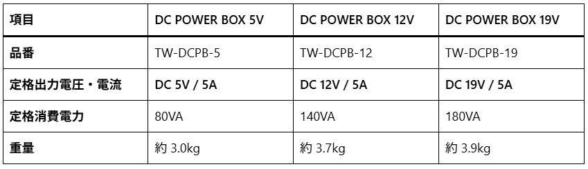 DC POWER BOX シリーズ 仕様比較表